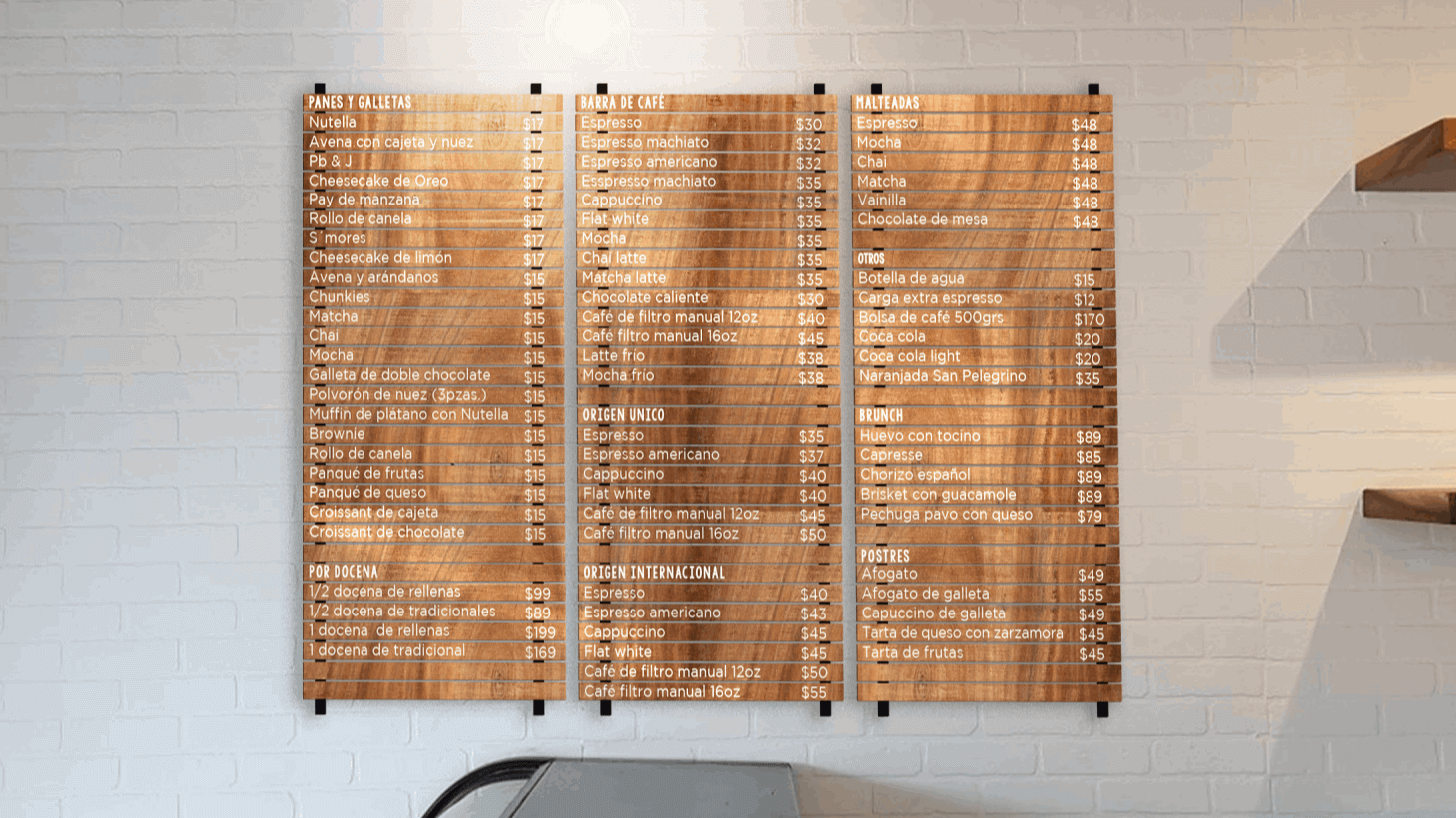 The whole experience wouldn't be completed without an asertive introspection of what the physical place has to offer to the costumer, so, based in wooden artifacts resembling the brunch n' coffee culture, many decoration was placed all over.