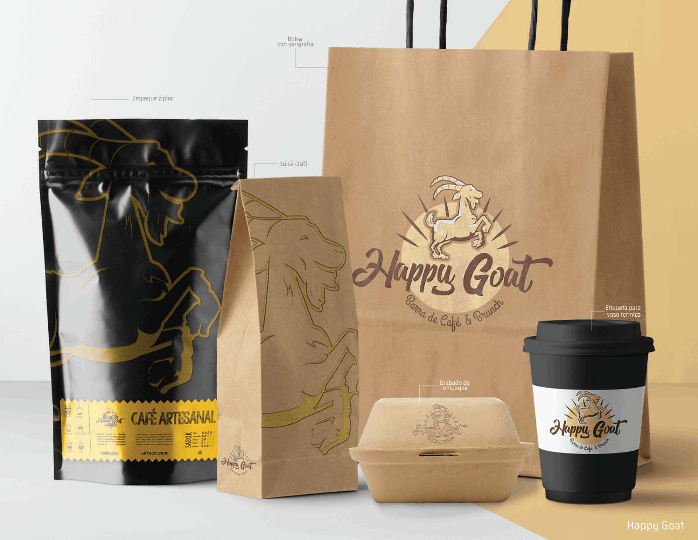 The brand name was inspired on the popular Ethiopian tale about Kaldi, a foster who notices his goats suddenly acting euphoric after consuming red fruit from some bushes. So, how come the goats can be so "happy" and Kaldi wouldn't? So he supposedly came and tasted some fruits and thus began the traditional coffee story, along with the Happy Goat legend.